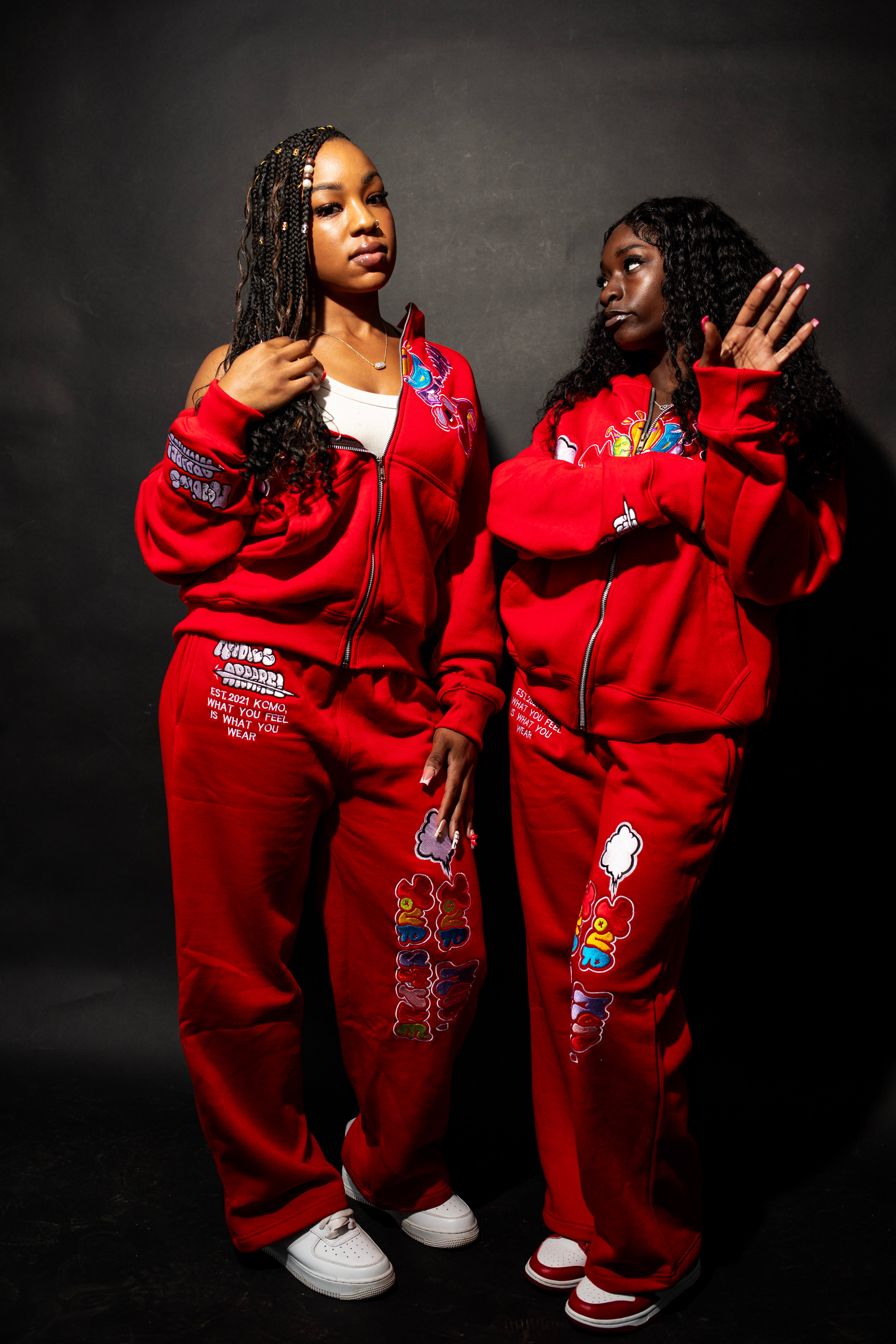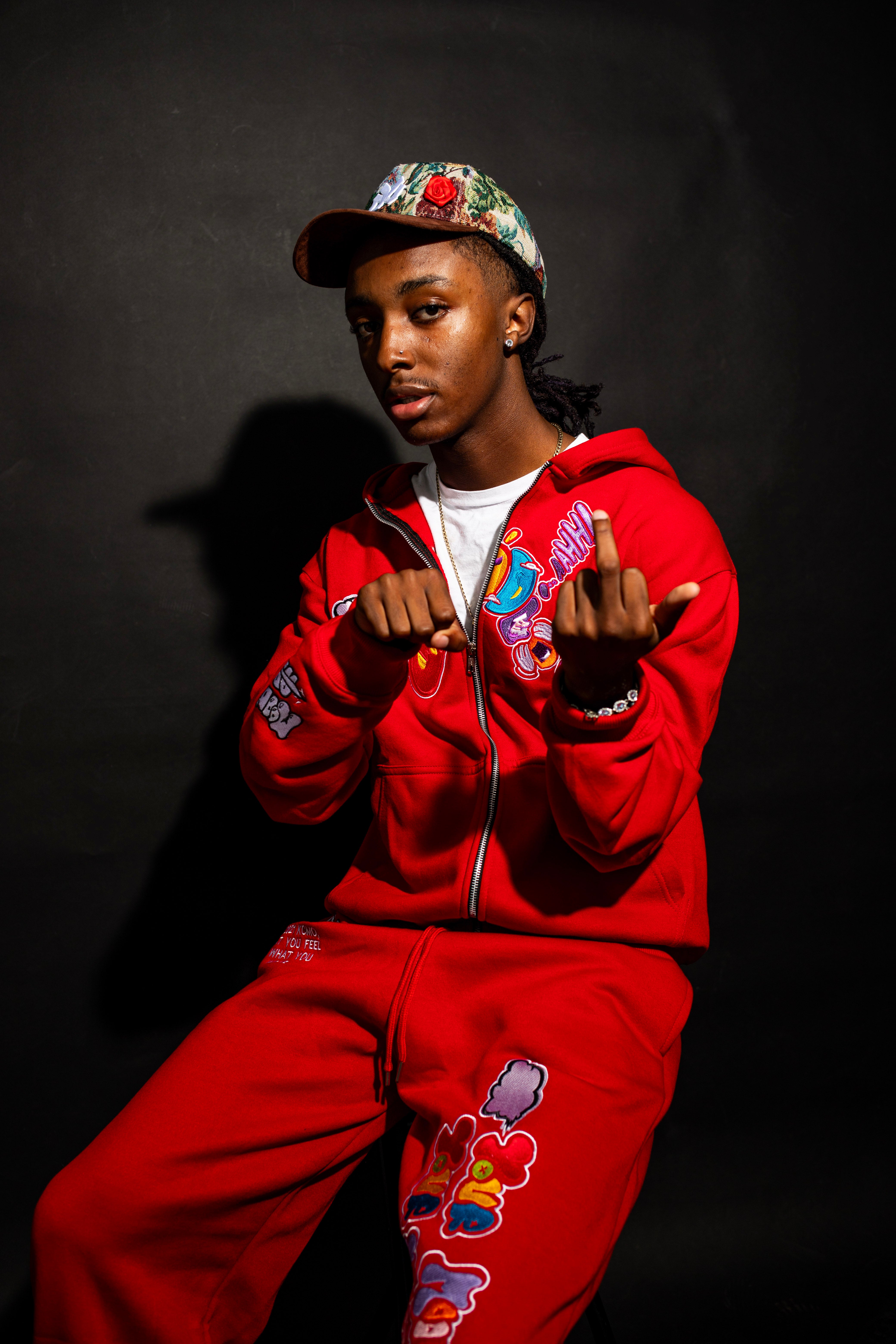 Wrap yourself in comfort and style with the Red PMO ZIP-UP SET. This zip-up and sweatpants are designed for an oversized, relaxed fit and deliver the perfect blend of coziness and streetwear edge. The bold, vibrant embroidery adds a dynamic pop, making every detail stand out. Crafted from 100% premium cotton, it's soft, breathable, and built to last. Whether you're stepping out or staying in, this piece brings your mood to life — wear it, feel it, own it.